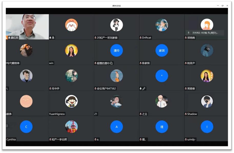 2021年12月16日22时30分,法律与知识产权教师党支部书记、知识产权系系主任龚红兵副教授在腾讯会议上向2020级法学(知识产权)专业的学生传达学校对东莞疫情形势的通报,解答了同学们有关实习和毕业论文等方面的相关问题。