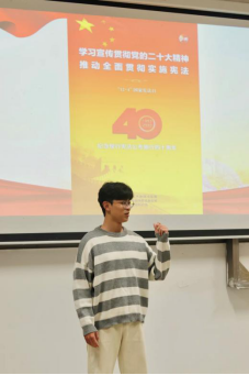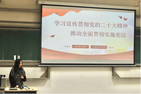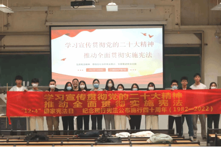 (知识产权学院)21级知识产权班开展了以“学习宣传贯彻党的二十大精神,推动全面贯彻实施宪法”的“12.4”宪法宣传日活动,该会议由班长曹颖主持,全班同学和班主任龚红兵老师共同参与。