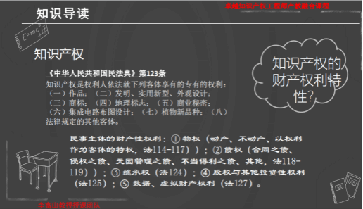 而后,李教授以民法典为基础阐述知识产权的财产权利属性,指出知识产权作为一种民事权利,在整个法律逻辑中虽有有较大争议,但这决定着同学们未来做价值评估时候的法律依据。在知识产权行业中,民法的掌握是重点,而民法的法理更是重中之重。