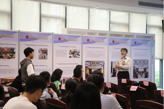 现场从莞城校区的大一的同学对在场的各位嘉宾也探讨了其作为一名一年级的同学对知识产权这个学科的认识和困惑。其中,他发出“学文科是否对知识产权行业的发展是否有很大的影响?”;现场李富山教授结合其自身经验做出了解读,影响是否存在、影响是否过大以至于不能踏入行业是出于心理障碍而存在的问题;学文科学理科并不是阻碍其前行和发展的阻力,最大的阻力是没有自信和动力。