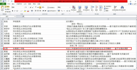 本次论文的获奖,表明我校社会工作专业在入选国家一流专业建设点之后,人才培养质量和专业建设水平得到快速提升。